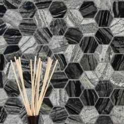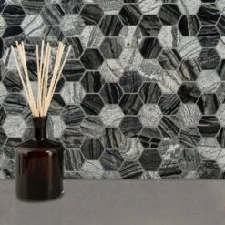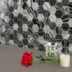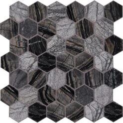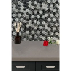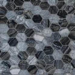 Enhance your home’s walls or countertops with this MSI Henley Hexagon 12 in. x 12 in. mosaic floor and wall tile. Crafted with chips of marble tile in a honeycomb pattern, these trendy gray tiles feature various finishes since natural stone lack uniformity. They add distinction to kitchen backsplashes, bathroom showers or accent walls. The tiles are arranged on a mesh sheet for easy installation. Install with a penetrating sealer. It’s normal maintenance to refill the voids between the seams of the stones. Note: Inspect all tiles before installation. Natural stone products inherently lack uniformity and are subject to variation in color, shade, finish etc. It is recommended to blend tiles from different boxes when installing. Natural stones may be characterized by dry seams and pits that are often filled. The filling can work its way out and it may be necessary to refill these voids as part of a normal maintenance procedure. All natural stone products should be sealed with a penetrating sealer.
